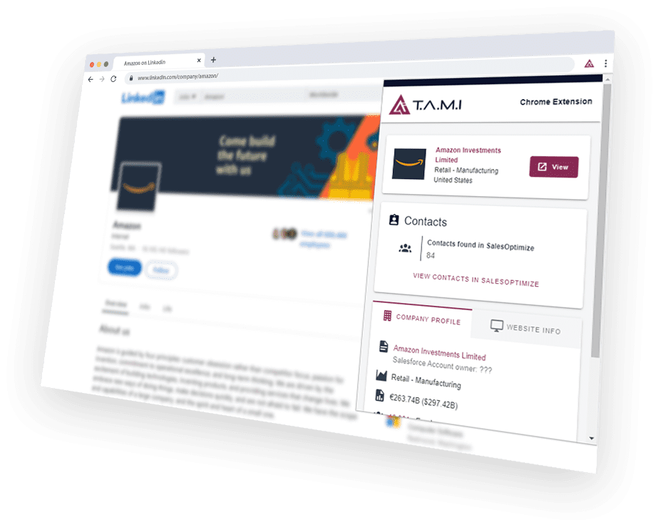 With TAMI’s Browser Companion, you get verified contacts and company insights as you browse any site or social page, including: